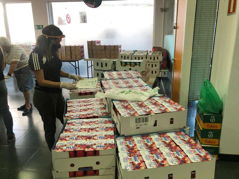 Un trabajo altruista y desinteresado por el bien común que empezó con la recogida de los alimentos en los supermercados del pueblo de la cadena Mercadona, mediante la ayuda de transportes Miguel MarÃ, que puso a disposición del Ayuntamiento sus camiones frigorÃficos para mantener la cadena de frÃo de los alimentos, y que llevó a la sede de la asociación El Cullerot donde esperaban los voluntarios de Coronavirus amb Cor para preparar las bolsas de alimentos y repartirlas entre las familias atendidas en Cáritas, Cruz Roja y servicios sociales de nuestro municipio.