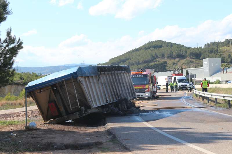 Un camión cargado de arcilla se ha quemado esta tarde en la salida a