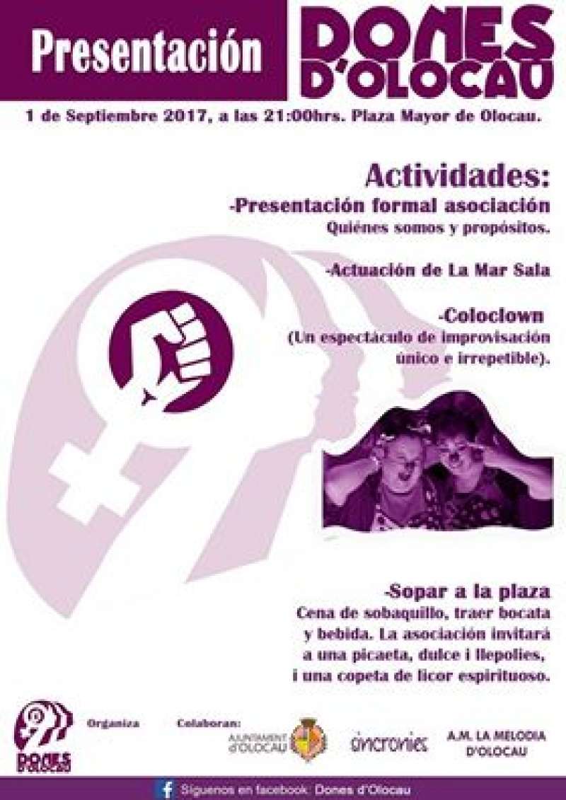 Las asociación de mujeres Dones d'Olocau da a conocer sus actividades invitando a la ciudadanÃa del municipio del Camp de Túria, el próximo viernes 1 de septiembre, a las 21.00 horas, con una cena de sobaquillo, una actividad y actuación para amenizar la velada.