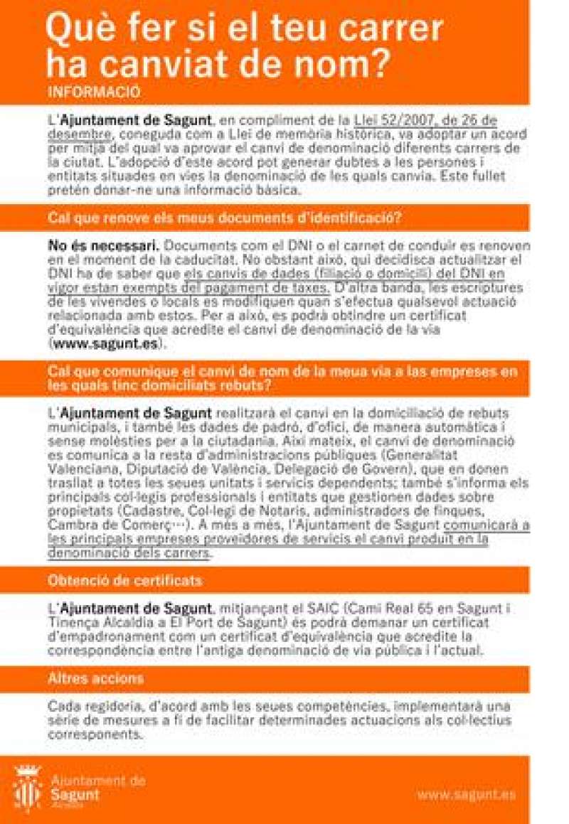 cambio producido en la denominación de las calles. Teniendo en cuenta que cada