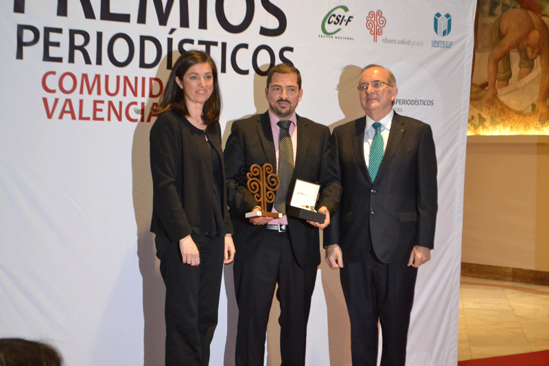 El director de El Periódico de AquÃ, Pere Valenciano, fue el protagonista de la gala celebrada anoche en el Ateneo Mercantil de Valencia, en la que recibÃa el galardón al Mejor Periodista del Año de la Comunitat Valenciana, junto a Jèssica Crespo que recogió el premio a la Periodista Revelación y al dibujante gráfico Ortifus, al que se premiaba por su reconocida Trayectoria Profesional.
