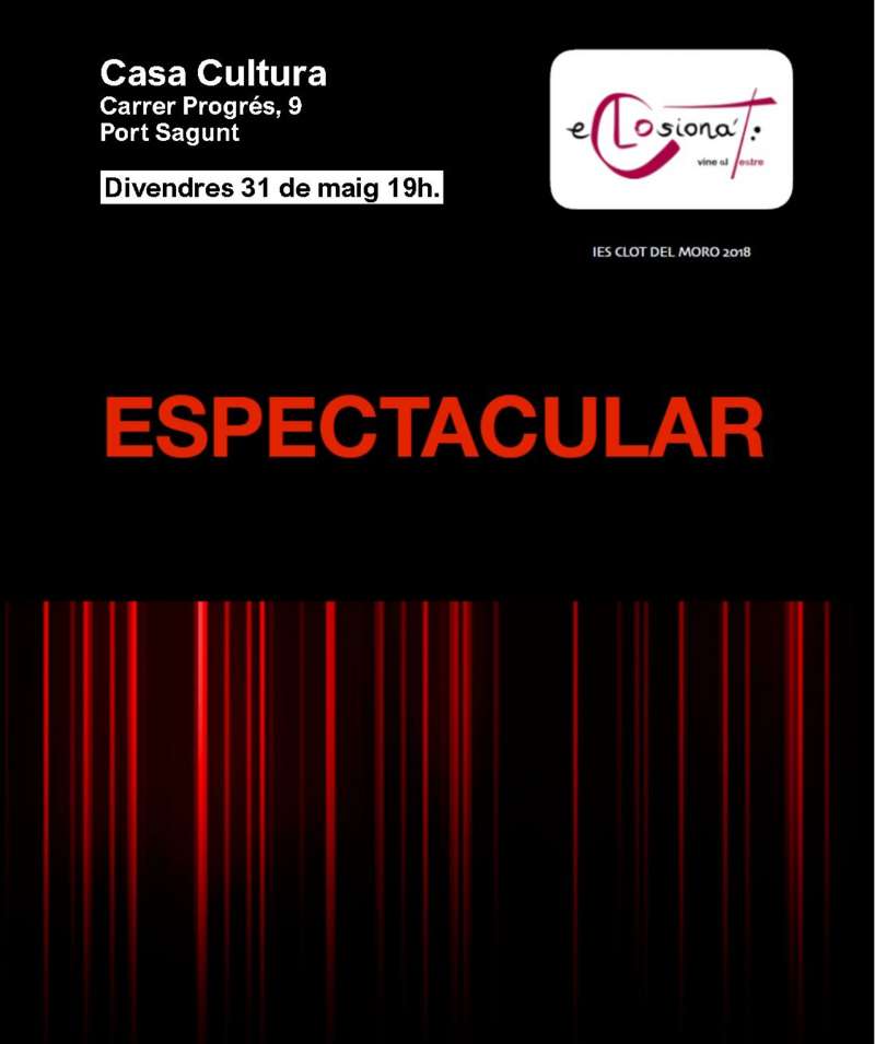 El próximo viernes 31 de mayo, a las 19 h la Casa Municipal de Cultura de Puerto de Sagunto acoge la obra teatral Espectacular, representada por el grupo de teatro del IES Clot del Moro.