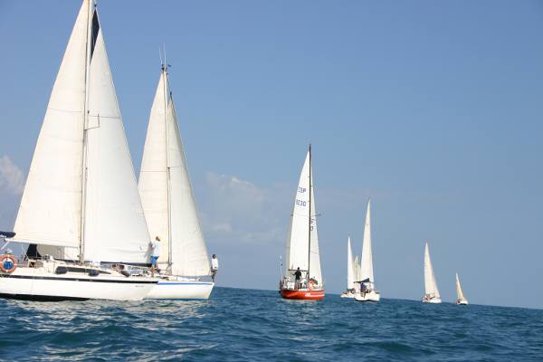Los regatistas vestÃan en su mayorÃa pantalón corto y camiseta, a mitad de octubre, y el buen tiempo animó a familiares y curiosos a pasear por los pantalanes. Además del calor, la sensación de evento festivo se vio aumentada por la sorpresa preparada por Cermeval, que envió dos hermosas azafatas a recibir a pie de pantalán con una botella de cava a todas las embarcaciones participantes.