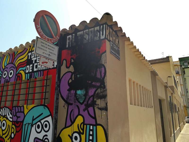 El mural de ElÃas Taño en el Mercado de Sagunt provoca una bronca en el equipo de gobierno, formado por CompromÃs, PSPV, EU y ADN Morvedre. Los dos primeros partidos se han abstenido en el pleno municipal en una moción de la oposición que ha salido adelante con los votos de PP, Ciudadanos e IP en la que se censura dicho graffiti, que incluye un mensaje de apoyo a los condenados por la sentencia de Alsasua. La postura de los dos partidos del gobierno municipal con su abstención ha provocado una agria polémica en redes sociales entre asesores de CompromÃs y EU. Además, el graffiti pintado en el mural del Mercado Municipal de Sagunt ha sufrido un acto vandálico y ha amanecido tachado de negro. La polémica frase 'Altsasu Koak' y el dibujo que acompaña a esta parte del grafiti ha sido objeto de los detractores de este mensaje del artista.