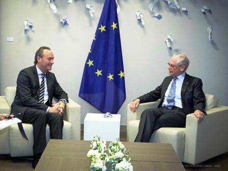 Alberto Fabra reunido con Van Rompuy. Foto EPDAEl President de la Generalitat, Alberto Fabra, ha reclamado hoy en Bruselas más financiación para las PYMES de la Comunitat Valenciana, asà como que se aceleren las ayudas destinadas al fomento del empleo joven.