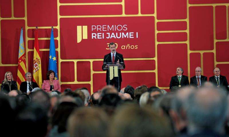 Felipe VI ha expresado este miércoles su "mayor reconocimiento y máxima admiración" a los seis galardonados en los Premios Rey Jaime I, de quienes ha dicho que también "referentes para la juventud sobre la forma de conseguir realizar un proyecto personal con éxito".