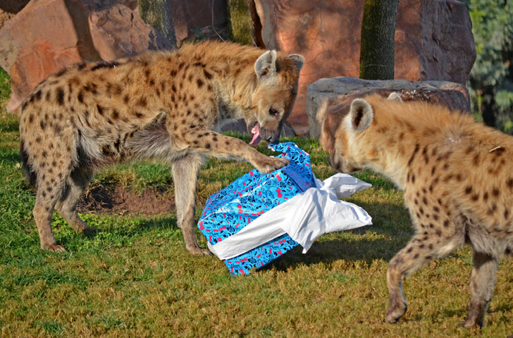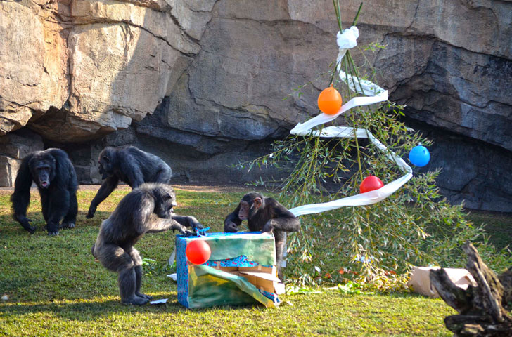 Sus Majestades han asombrado a muchos de los animales con sus golosinas preferidas, juguetes y adornos que han convertido los hábitats africanos en una estampa similar a la de muchas familias humanas