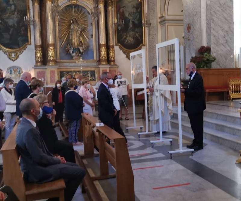En las fiestas de la Virgen de los Desamparados de la barriada de Sagunto de la ciudad de Valencia, popularmente conocidas como Fiestas de la Rosquilleta, el cura párroco José Ricardo Albelda, y el ministro extraordinario de la comunión que le ayudaba, la distribuyeron parapetados por una mampara de cristal. Se trata de una estructura de hierro a manera de ventanal, bajo el cual daban la comunión en la mano a los fieles. Estos elementos son movibles, al tener bajo unas ruedecillas que facilitan su traslado.
