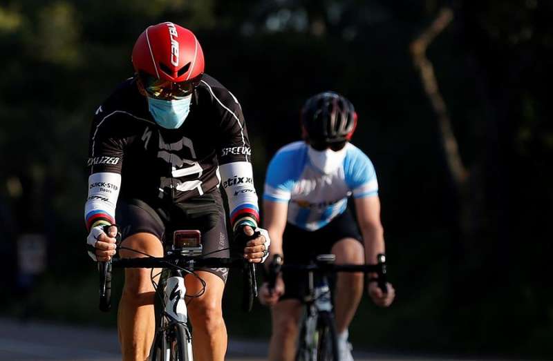 Dos ciclistas de paseo con mascarilla, en una de las imágenes que nos han dejado estos días. EFE-Miguel Ángel Polo
