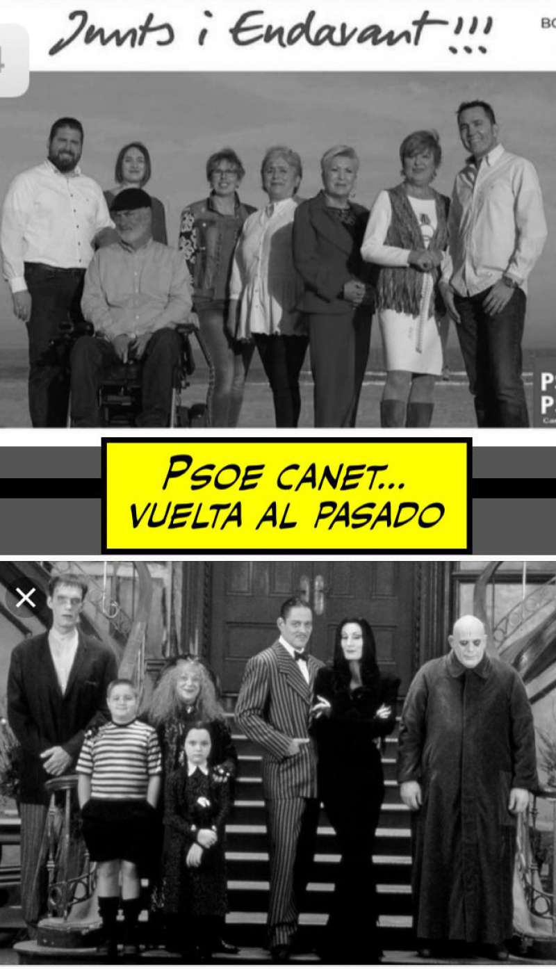 Meme comparando la lista del PSOE con la familia Adams.El lÃder socialista.El candidato de CompromÃs.Ciudadanos Canet.El alcalde tampoco escapa.La lista de EU.