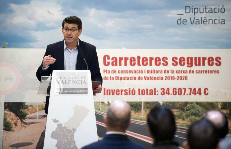 El presidente de la Diputació de València, Jorge RodrÃguez, y el diputado de Carreteras, Pablo SeguÃ, han presentado este lunes los nuevos contratos de Conservación y Mantenimiento de la red viaria provincial para los próximos tres años. En ese perÃodo 2018-2020, la Diputació invertirá cerca de 35 millones de euros en estas mejoras básicas en los 1.800 kilómetros de vÃas que recorren los municipios valencianos, con el objetivo de que los habitantes de todas las comarcas puedan tener unas carreteras más seguras.