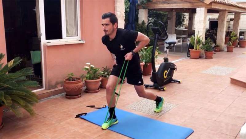 Un árbitro se ejercita en su casa para no peder la forma fñisica durante la cuarentena, en una imagen facilitada por la FFCV. EFE