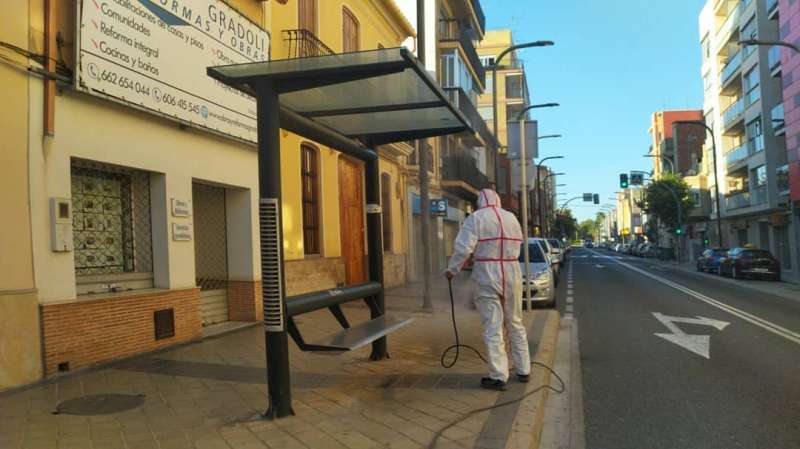 El Ayuntamiento de Massanassa sigue incrementando los protocolos de limpieza y desinfección en la localidad. Todos los dÃas de la semana, de lunes a domingo, entre las 8 y las 10 de la mañana, dos equipos de la Brigada de Obras Municipal proceden a desinfectar los parques infantiles, zonas de juegos y mobiliario urbano, asà como los lugares más transitados por los vecinos y vecinas como las paradas de autobús, la estación de RENFE, el ambulatorio, las farmacias, la residencia de la Tercera Edad y las zonas comerciales.