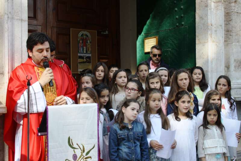 las 11:00 h, dio comienzo la bendición de las palmas, del laurel y del