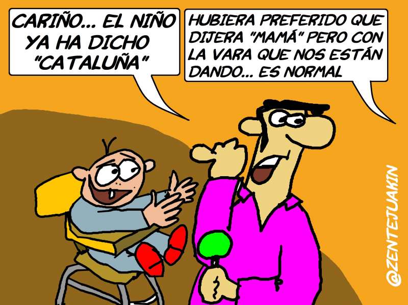 Ni mamá, ni papá, el niño ya dice ¡Ca-ta-lu-ña! Con su fina ironía Vicente García Nebot nos regala otra de sus fantásticas viñetas.