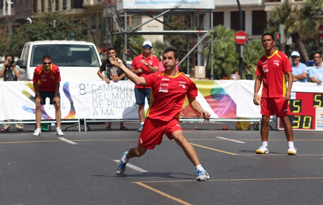 Raul de Godelleta, en la final de llargues davant de Belgica. FOTO: GVALa deserción por parte de las clases acomodadas, la presencia cada vez más intensa de los automóviles, y por lo tanto del tráfico, y la imposición del fútbol como el deporte supremo, relegaron la pilota valenciana a un segundo plano. Eran los años sesenta y ese nuevo sistema económico, tecnológico, social y cultural, apodado globalización, forzaba a despejar las calles de ciudades y pueblos, el terreno de juego por excelencia del deporte más practicado en la Comunitat Valenciana entre los siglos XV y XVIII.