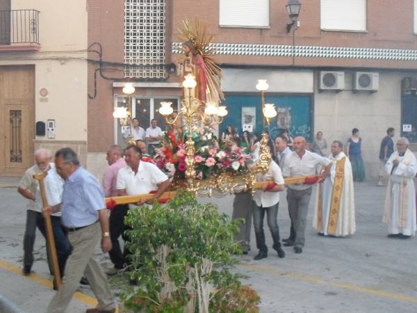 Al anochecer, comenzó la procesión general, y a las 21 horas, a los acordes del Himno Nacional, salió del templo a la plaza de España la imagen del Sagrado Corazón de Jesús, que fue saludada con el disparo de las 21 salvas de honor, y que fue acompañada,por el tradicional itinerario del centro urbano, por las clavariesas de la cofradÃa, el clero local, los niños y niñas de la Primera Comunión y los feligreses y feligresas devotos.
