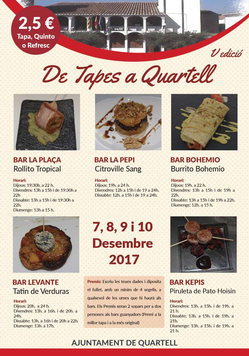 inclosa per 2'50 €, i qui ho dessitge podrà votar la millor tapa