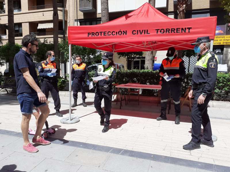 Con la entrada en vigor el pasado 2 de mayo de la Fase 0 con horarios para pasear y practicar deporte según la edad y la actividad a realizar o la apertura de algunos comercios con cita previa, Protección Civil de Torrent, Cruz Roja y PolicÃa Local llevaron a cabo una campaña informativa y divulgativa para resolver las cuestiones que pudieran plantearse los torrentinos y torrentinas. De esta forma, durante el fin de semana, los voluntarios y voluntarias se distribuyeron en diferentes puntos de la ciudad para que nadie incumpliera la regulación y conociera todos los detalles necesarios.