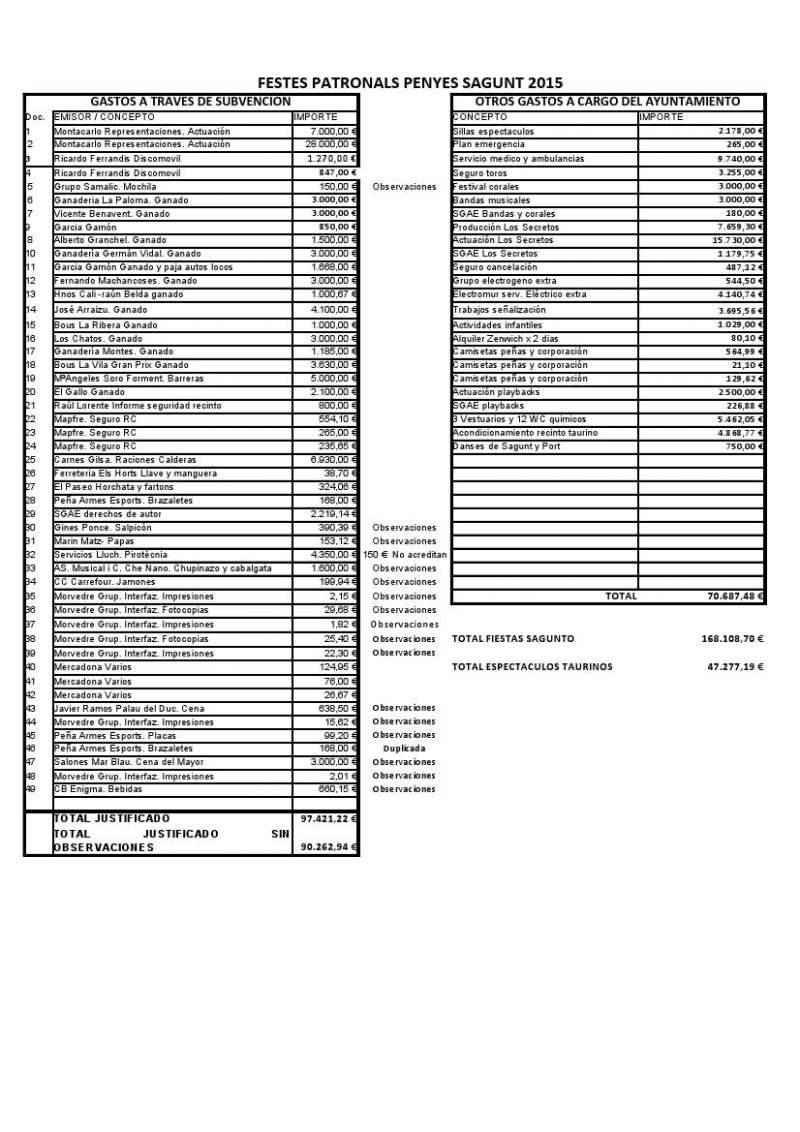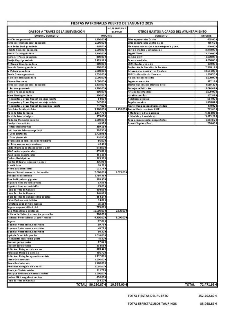 Cuadro de gastos de las peñas de Sagunto de 2015. EPDACuadro de gastos de las peñas de Puerto de 2015. EPDA