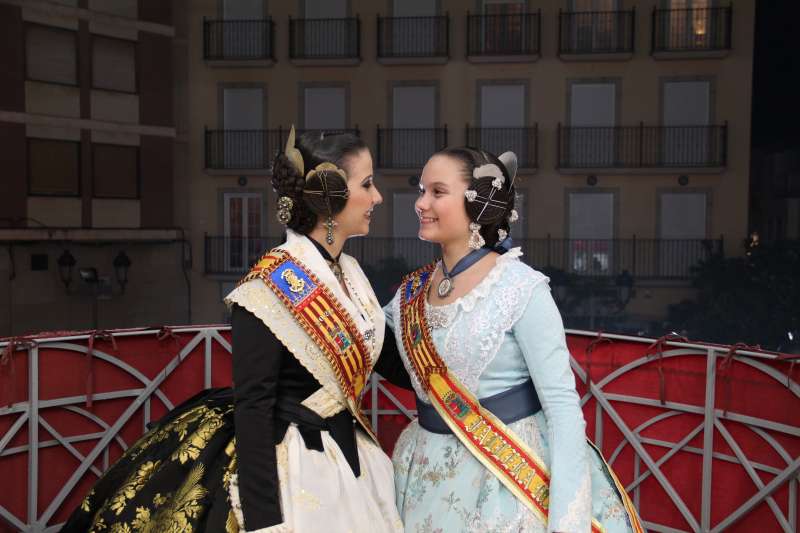 bienvenida a las fallas junto a mi fallera mayor infantil, desde lo más alto de