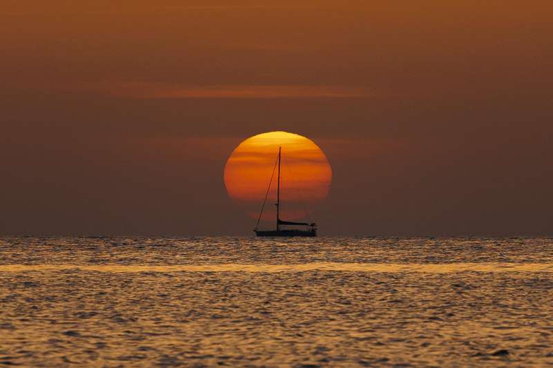 Un barco navega al amanecer frente a la playa de Las Rotas de Denia (Alicante). EFE/Biel Aliño/Archivo