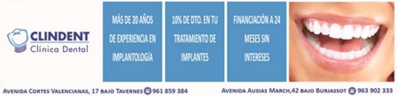 Clindent, 20 años de experiencia en implantología en Burjassot y Tavernes Blanques