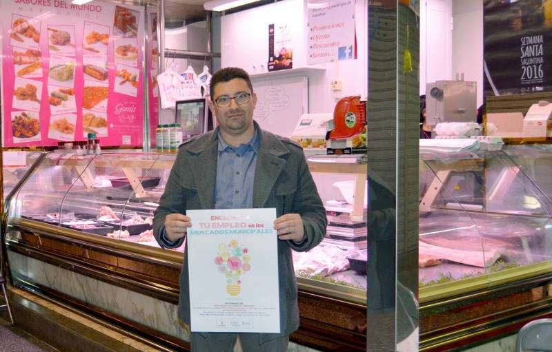 El concejal de Mercados, Sergio Moreno, en una parada muestra el cartel de la campaña. EPDAEl Ayuntamiento de