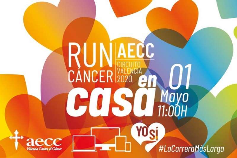 Cartel anunciador de la iniciativa. EPDAEl Circuito de carreras RunCáncer, impulsado por la Asociación Española Contra el Cáncer (AECC) de Valencia, ha programado una prueba virtual y solidaria para este próximo viernes 1 de mayo y cuya recaudación será destinada íntegramente a los pacientes de cáncer más vulnerables durante la crisis generada por el COVID-19.