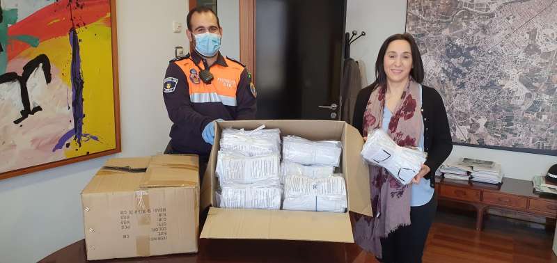 mascarillas que están siendo donadas a Protección Civil para su reparto; una