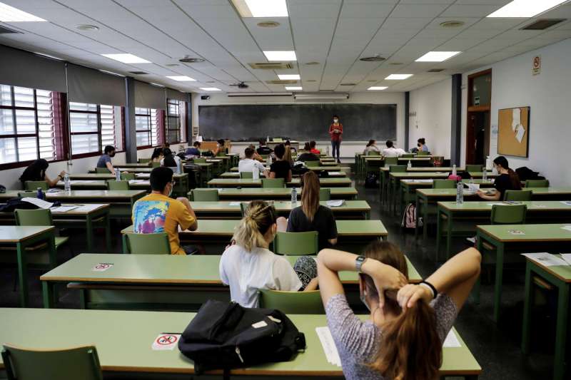 Varios estudiantes antes del inicio de las Pruebas de Acceso a la Universidad (PAU). EFE/Ana Escobar/ArchivoLa Universitat de València ha cubierto el 100 % de las 8.808 plazas de primer curso que ofrecía en las titulaciones de grado para el curso 2022-2023, de las que 43 tienen una nota de corte superior a 10.