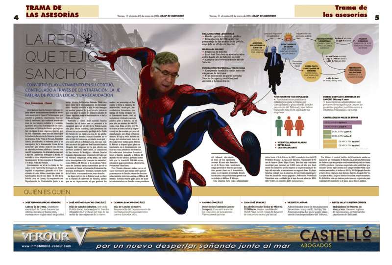 Aprovecha el condenado Sancho para criticar a la Unidad Orgánica de la Policía Judicial de Valencia (UOPJV), a la que recomienda que ‘‘en vez de perder el tiempo en todas las inútiles diligencias practicadas durante dos años, con evidente retraso y daño a la justicia y a muchas personas (...), tenían que haber ido a cada uno de los juzgados indicados en cada una de las facturas a deducir testimonio’’. Se refiere Sancho a los encargos realizados por el Consistorio a la Academia Valenciana de Juristas y a quién paga las facturas a la AVJ, señalando a ‘‘Amparo Mañó, Víctor Almor, Octavio Herranz y Leandro Benito’’ y nombrando como letrados a José Ramón Llopis Cotanda, Juan Jesús Gilabert y José Ignacio Maruenda. Éste último también se embolsó 12.000 euros en un año por un supuesto asesoramiento a inmigrantes.