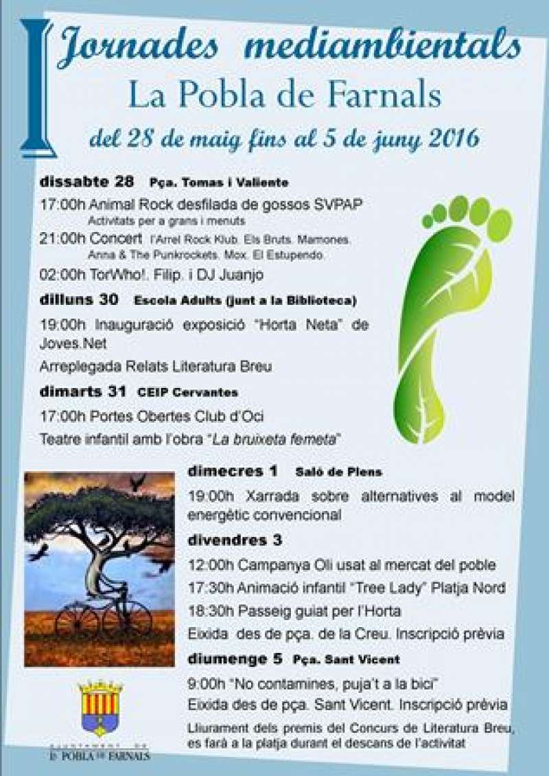 Cartel de les jornades de La Pobla. EPDAL’Ajuntament de La Pobla de Farnals ha preparat tot un seguit d’activitats per a celebrar les I Jornades Mediambientals entre els dies 28 de maig i 5 de juny.
