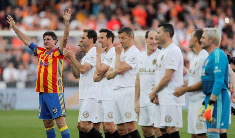 El once inicial del Valencia juntó a futbolistas de varias décadas diferentes desde los años 70, como Ricardo Arias, que a sus 62 años se vistió de corto y jugó con futbolistas de los ochenta y noventa, como Javier Subirats, Fernando Gómez, Fernando Giner, Paco Camarasa o Voro, y otros de principio de siglo como el Piojo López, Miguel Ángel Angulo o Vicente Rodríguez.