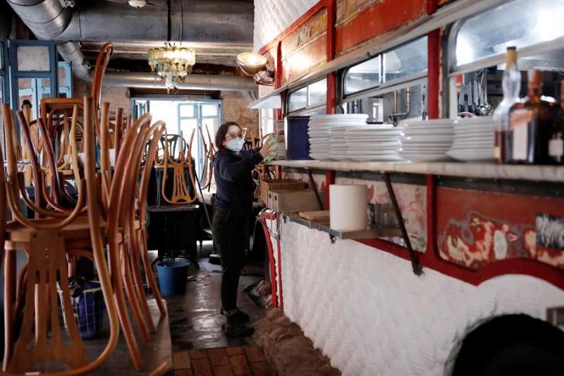 La encargada de un local realiza labores de limpieza y preparación cuando se abrió la hostelería en la Comunitat Valenciana. EFEEste lunes han entrado en vigor en la Comunitat Valenciana las nuevas medidas aplicadas por la Generalitat dentro del proceso de desescalada de la tercera ola de la pandemia de coronavirus, en la que la mejor situación epidemiológica ha permitido flexibilizar algunas restricciones.