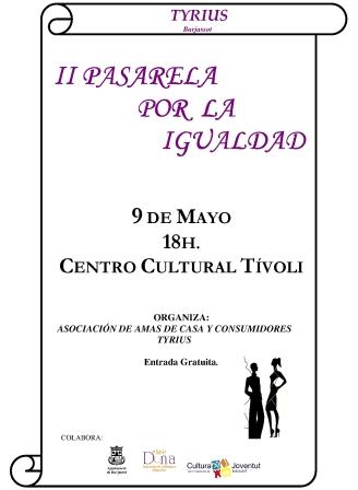 El 9 de mayo, Espai Dona colaborará en la II Pasarela por la Igualdad de género que, organizada desde la Asociación de Amas de Casa y Consumidores Tyrius de Burjassot, tendrá lugar en el Centro Cultural Tívoli. Una tarde en la que las mujeres del municipio harán de modelos y lucirán sus mejores galas.