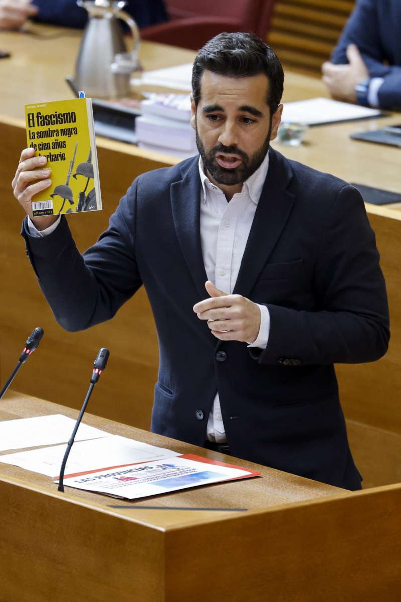 El síndic de Vox, José María Llanos, no ha traído ningún libro a Les Corts, pero sí ha recomendado desde la tribuna al síndic socialista "El Maquiavelo de León: cómo es en realidad Zapatero", de José García Abad.