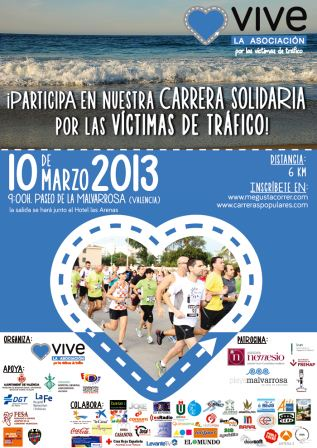 Cartel de la carrera convocada por la Asociación ?Vive?. Foto EPDALas playas del Cabanyal y La Malvarrosa de Valencia serán el escenario de la II Carrera Solidaria por las Víctimas de Tráfico, que organiza la Asociación “Vive”, y que se celebrará el próximo domingo 10 de marzo.