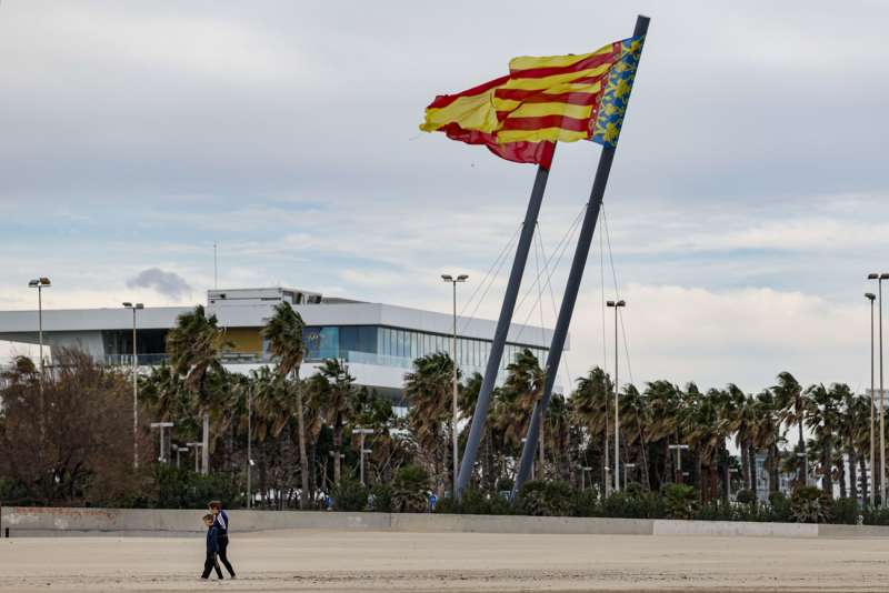 En la imagen dos personas camina por la playa de Las Arenas de Valéncia. EFE/Ana EscobarLa Conselleria de Emergencias e Interior, a través del Centro de Coordinación de Emergencias de la Generalitat Valenciana (CCE) y el teléfono único de Emergencias 1·1·2, ha gestionado en las últimas 24 horas un total de 504 incidentes relacionados con el viento y ha pedido a los ciudadanos que extremen las precauciones y repasen los consejos de protección civil.