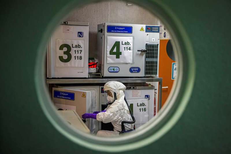 Un trabajador en el laboratorio de alta seguridad en el Centro Nacional de Biotecnología, de Madrid. EFEUna vacuna experimental contra el coronavirus SARS-CoV-2 ha mostrado eficacia y seguridad en los primeros resultados tras ensayarla con personas, según ha anunciado hoy la compañía estadounidense Moderna.