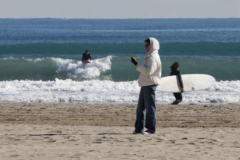 Unos surfistas en el agua en la Playa de la Malvarrosa de Valencia.EFE/ Juan Carlos Cárdenas