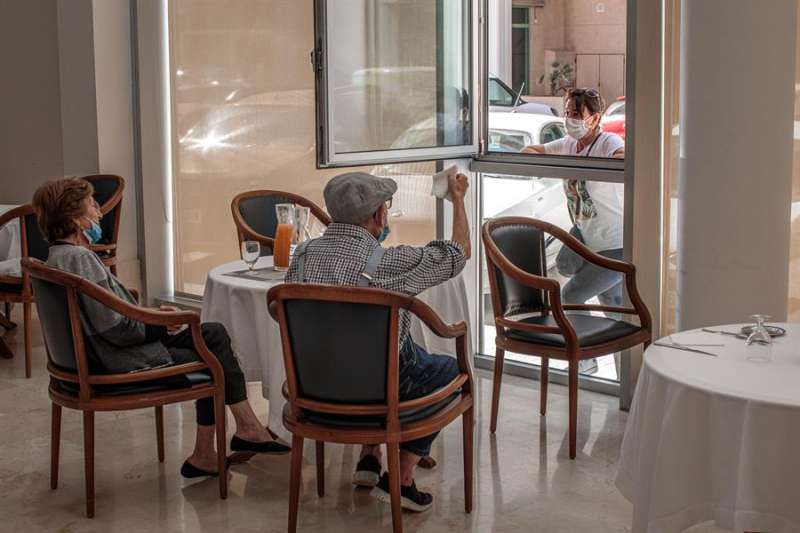 Una persona conversa con sus padres a través de una ventana habilitada en la residencia de mayores Ballesol Patacona. EFELas visitas a las residencias de mayores y las terapias rehabilitadoras de centros de día de mayores de la Comunitat Valenciana se empezarán a recuperar "muy poco a poco" y de manera paulatina durante la fase 2 de la desescalada.