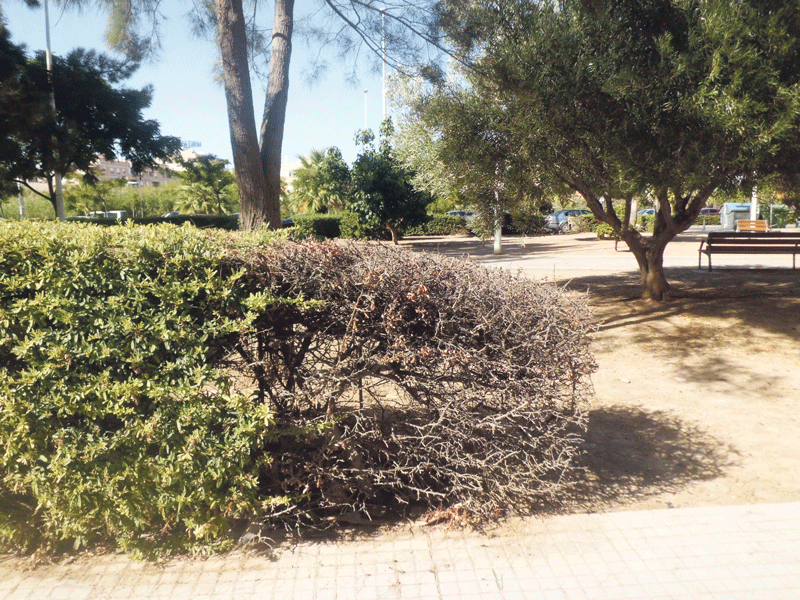 Sin embargo, "la triste realidad es que esta zona presenta una total degradación por la jauría de perros que se reúnen aquí, ya que no se han habilitado otras alternativas", señalaban los afectados. "Los canes defecan por doquier ante la pasiva actitud de sus propietarios, salvo mínimas excepciones, dificultando, en el mejor de los casos, el paso a los posibles peatones e incumpliendo al menos los artículos 12 y 17 de la ordenanza dependiente del departamento de sanidad municipal", añadían. "Así pues, el resultado de estas diarias excursiones durante años da lugar a un constante reparto de excrementos por toda la zona ajardinada. Concretamente, más de doscientas deposiciones se contabilizaron durante una vigilancia municipal, además de los requemados de macizos vegetales por la acidez de los orines que se inyectan sobre sus raíces, etc. Al lamentable panorama hay que añadir la proliferación de moscas y mosquitos, entre otros insectos, que acuden por la variedad de heces, que evidentemente revolotean por todo el medio circundante, incluso penetrando en viviendas y locales próximos, con el potencial peligro de sus picaduras infecciosas", afirmaban los vecinos, que ya han acudido al ayuntamiento en trece ocasiones, sin ningún resultado.