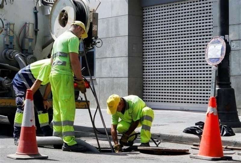 Varios operarios realizan un servicio de reparación en el centro de València. EFE