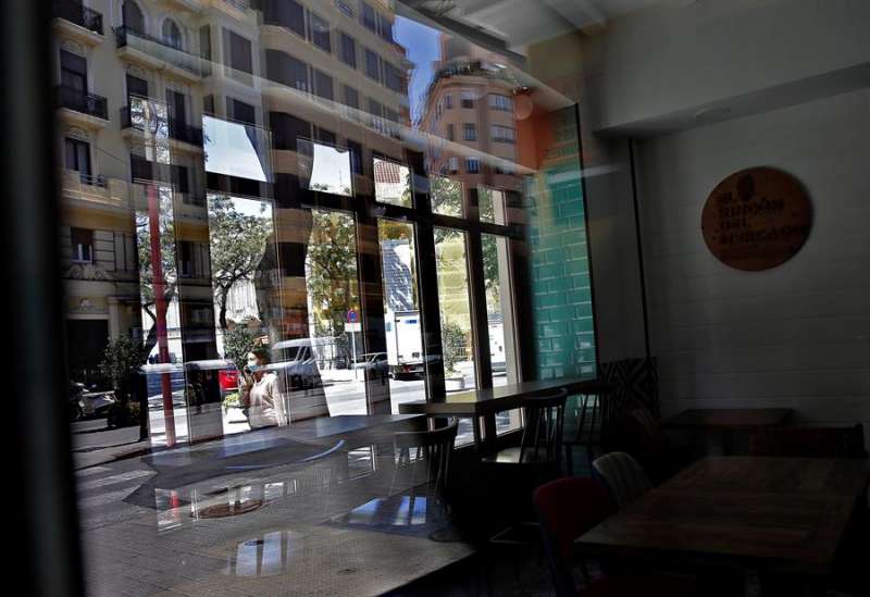 Una joven pasa ante una cafetería cerrada en el barrio del Carmen de València. EFE