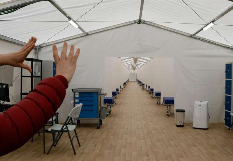 Imagen de las instalaciones del hospital de campaña que se ha construido junto al Hospital La Fe de Valencia y que albergará cerca de 600 camas. EFE/ Juan Carlos Cárdenas