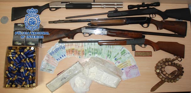 gramos de heroína, 6000 euros, un revólver sustraído, nueve escopetas, más de