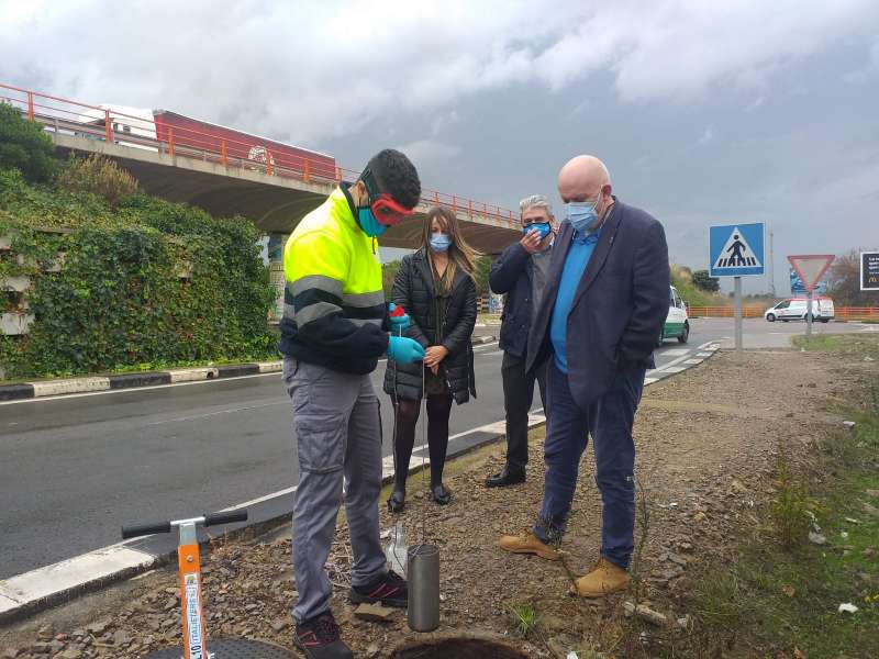Momento en el que se toman muestras del agua.El Ayuntamiento de Museros ha apostado por