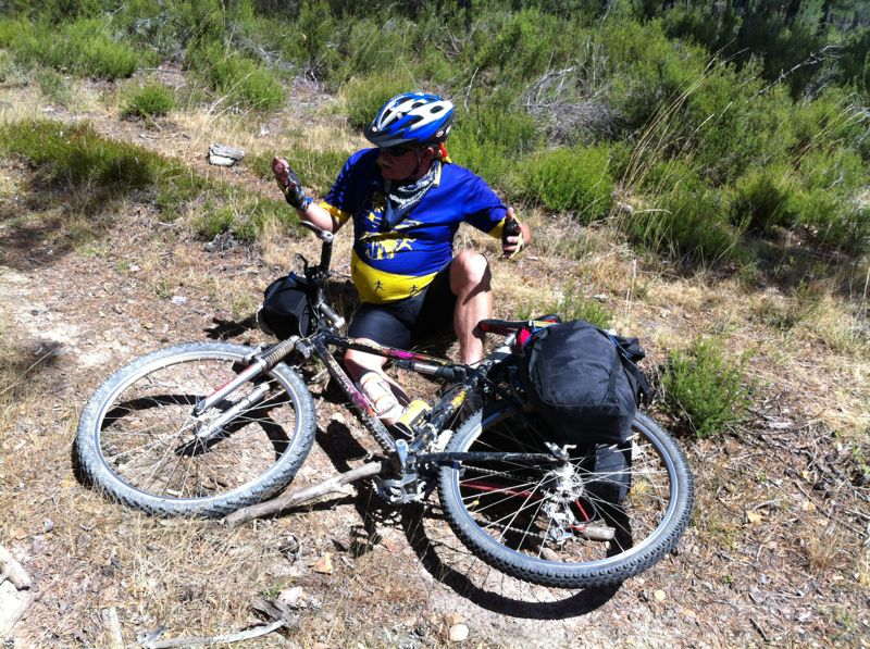 Pilar Pozuelo pinchó la rueda delantera y Paco tuvo que repararla. FOTO P. P.