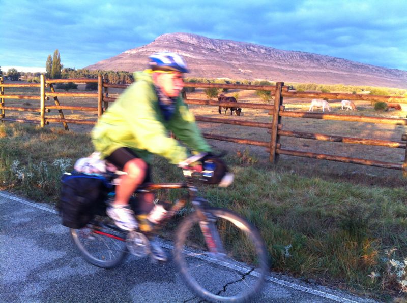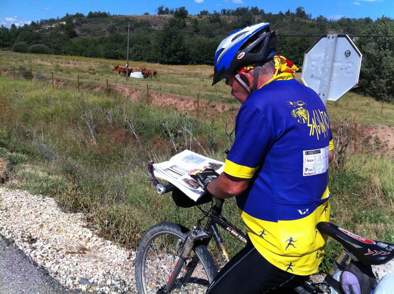 Pili, ¿p"ande vamos? FOTO P. POZUELOEl tercer día del Camino de Santiago de los saguntinos Paco Bono y Pilar Pozuelo en bicicleta ha sido especialmente intenso. Con salida de Soria, han tenido un trayecto muy duro, con caída -sin consecuencias importantes- de Paco Bono, pinchazo de la rueda delantera de Pili, encuentro con un grupo de saguntinos y llegada a Santo Domingo de Silos, acogidos con mucho cariño por los monjes, a los que han escuchado cantar esos cantos gregorianos que tan famosos los hizo en su momento.